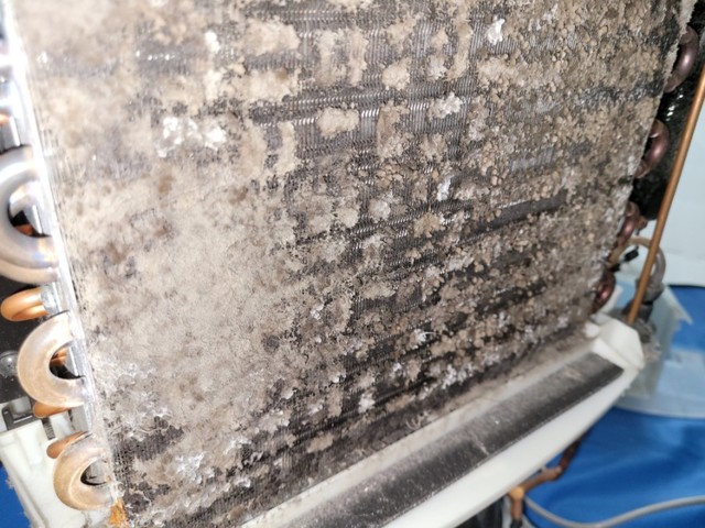 겉으로는 깨끗해 보여도, 필터를 통과한 미세 먼지와 습기가 내부에 쌓이면서 팬과 열교환기, 배수 구조에 곰팡이와 오염이 누적됩니다.